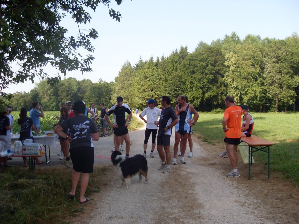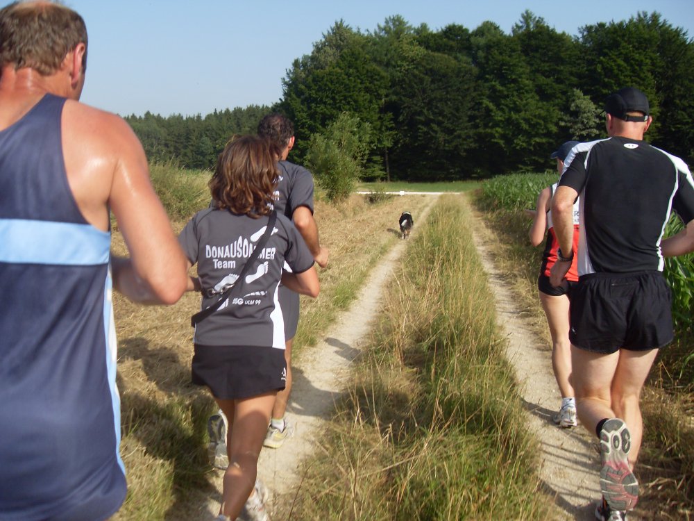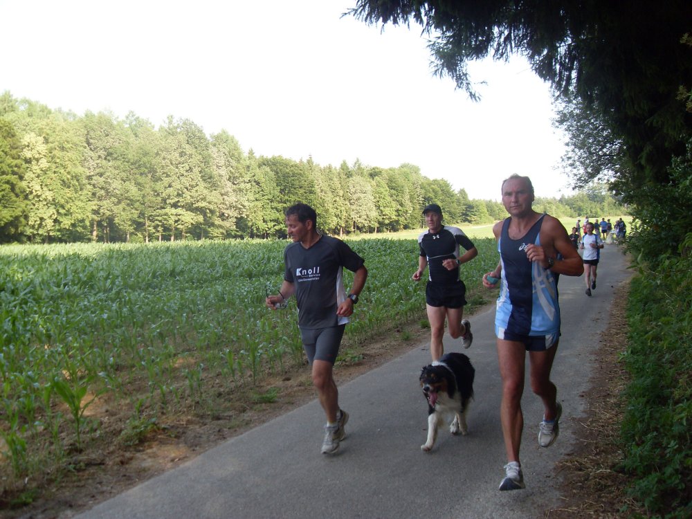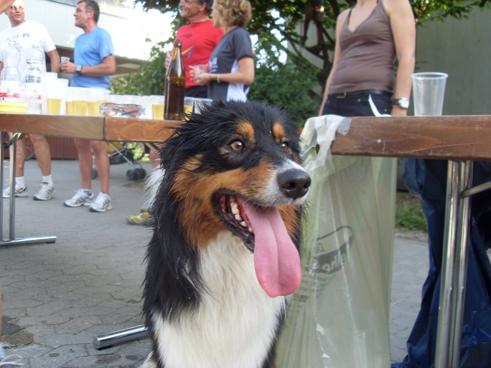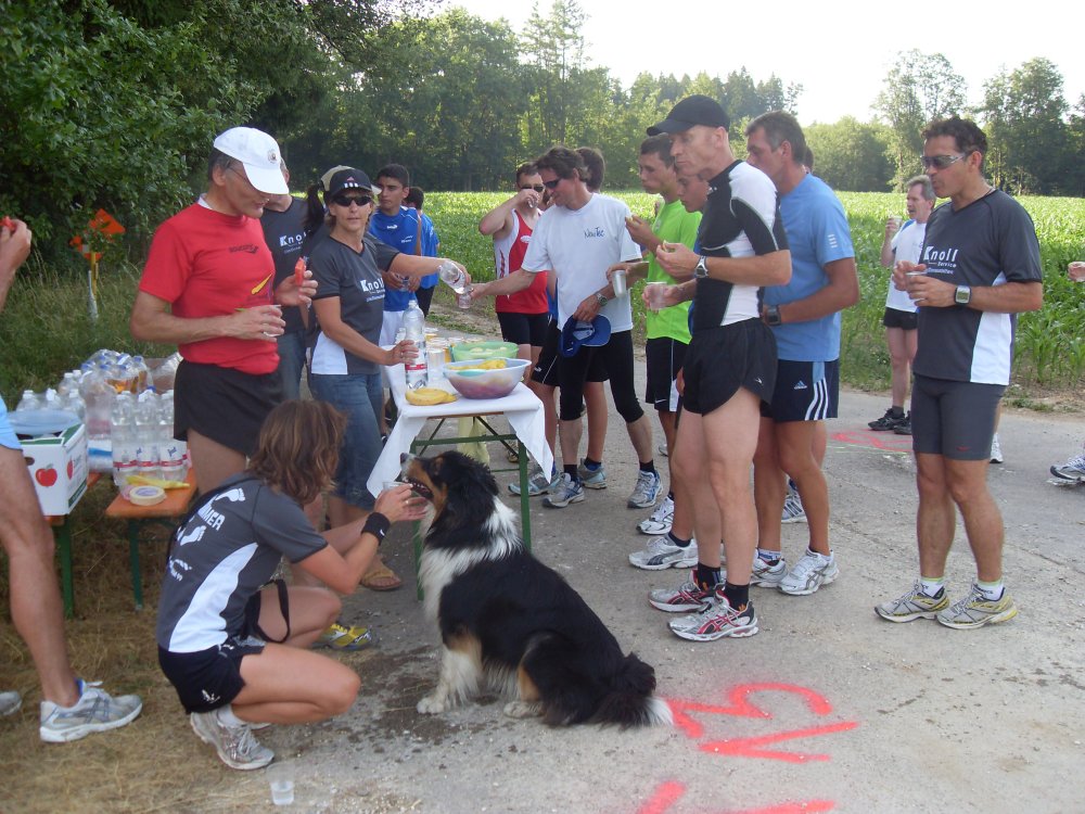 | ...man hört immer was von Tempo-Hasen...hier der Tempo-Wuffl....wir können nicht mehr folgen...nach ca.4,5 Km super Erfrischungs-Stand...Trinken-Trinken-Trinken.Hier besteht die Möglichkeit noch zu Entscheiden 8 oder 13 Km? |