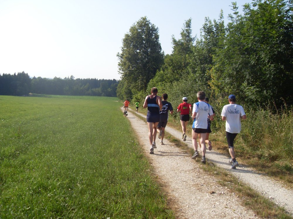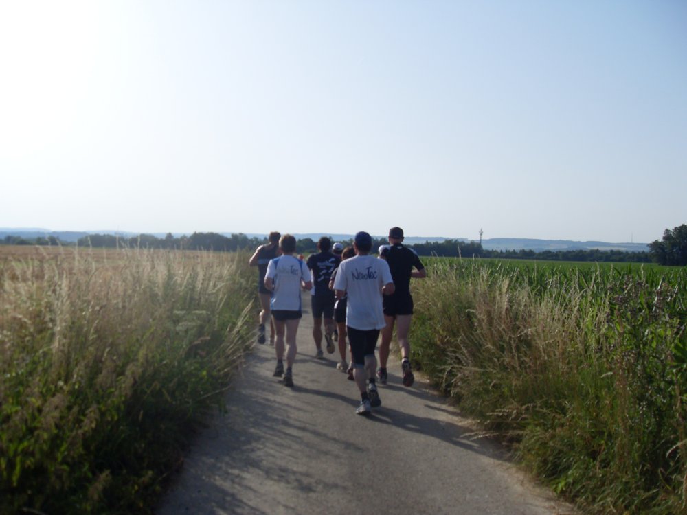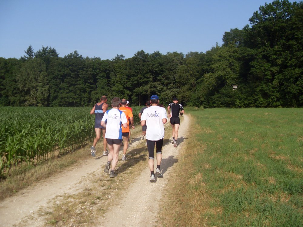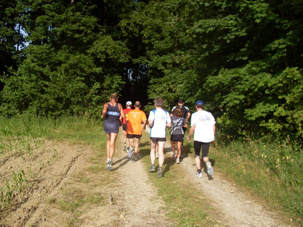 | ...es läuft sich weiter in der Sonne...in den Wald hinein...Schutz und "Kühle".........um dann wieder raus zu laufen...zum Verpflegungs-Stand |