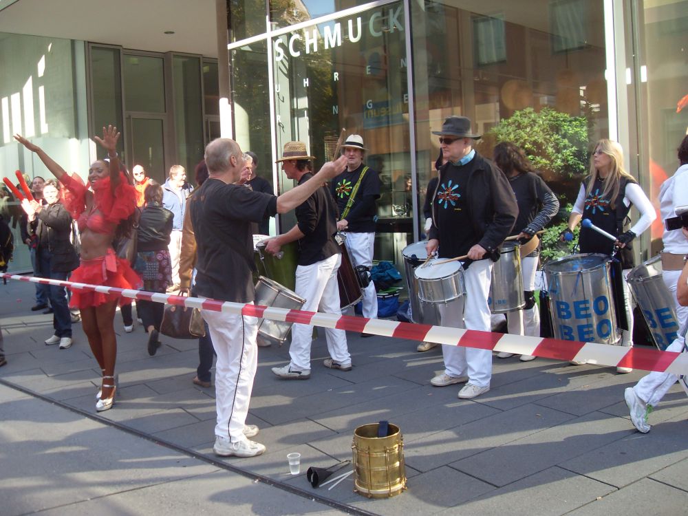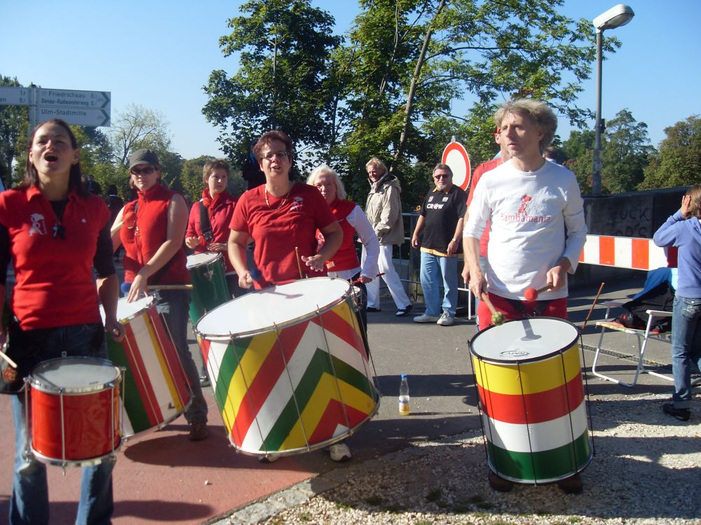 | Und schon geht’s raus…1km Striebelhof ..locker! ein Blick zurück….ein Köpfe-Meer. Eine Zuschauerin ruft mir zu „nur noch die hälfte“ ..Antwort „nur noch ¾“…… ob sie das verstanden hat????...wenigstens gibt es bei den Trommlern keine Missverständnisse: Trommel zu: Läufer / Jogger / Schönwetterjogger / Walker …..auf weiter! Danke! Takt für die Füß! |