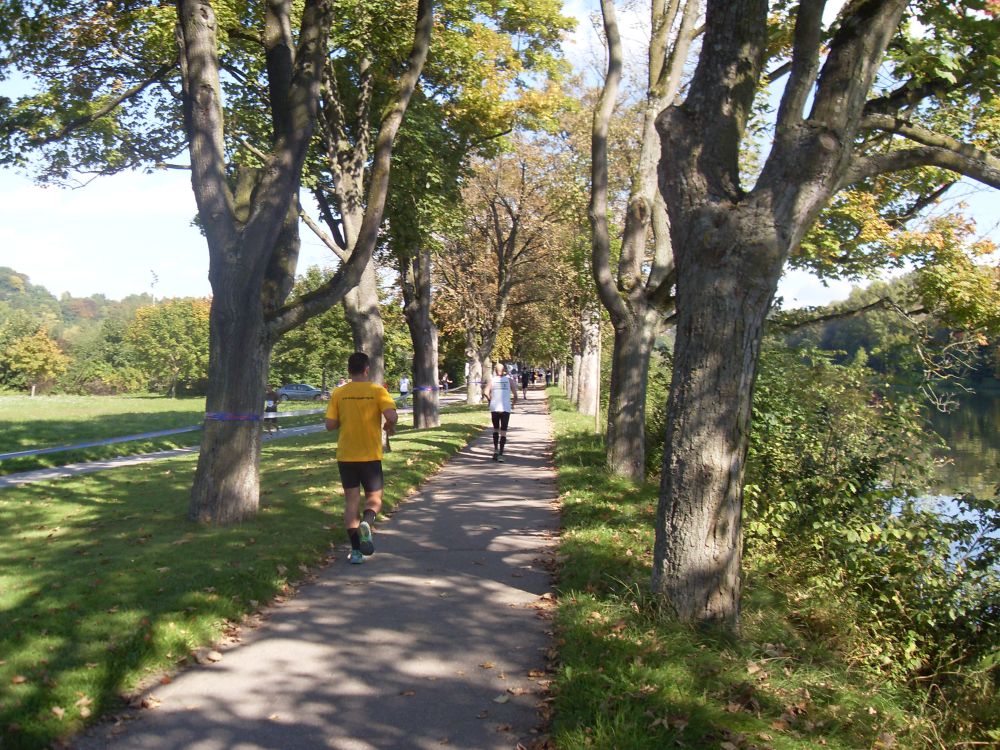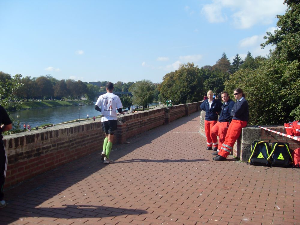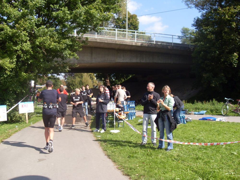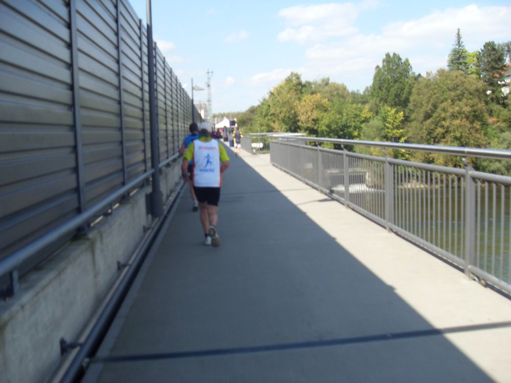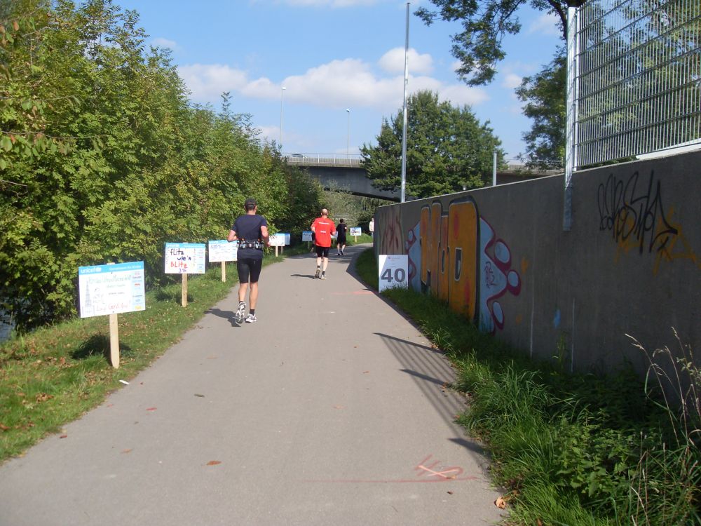 …am HM Ballon 1:59 vorbei, ..Dank Dieter´s Brei!...dann am Ulmer Ufer geht es nun wieder zur Au! (Friedrichsau), …der ersehnte km wird kommen…ja der KM, ab da wir "Em´s" alleine laufen (müssen) , eine Weichenstellerin passt da auf (nicht dass ein HM in die falsche Richtung läuft, würd´s doch selber merken, wenn er bei km 23 noch nicht im Ziel ist ?)…