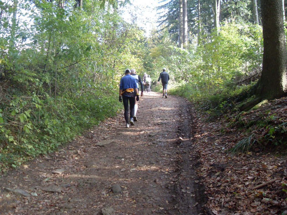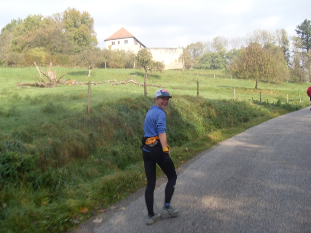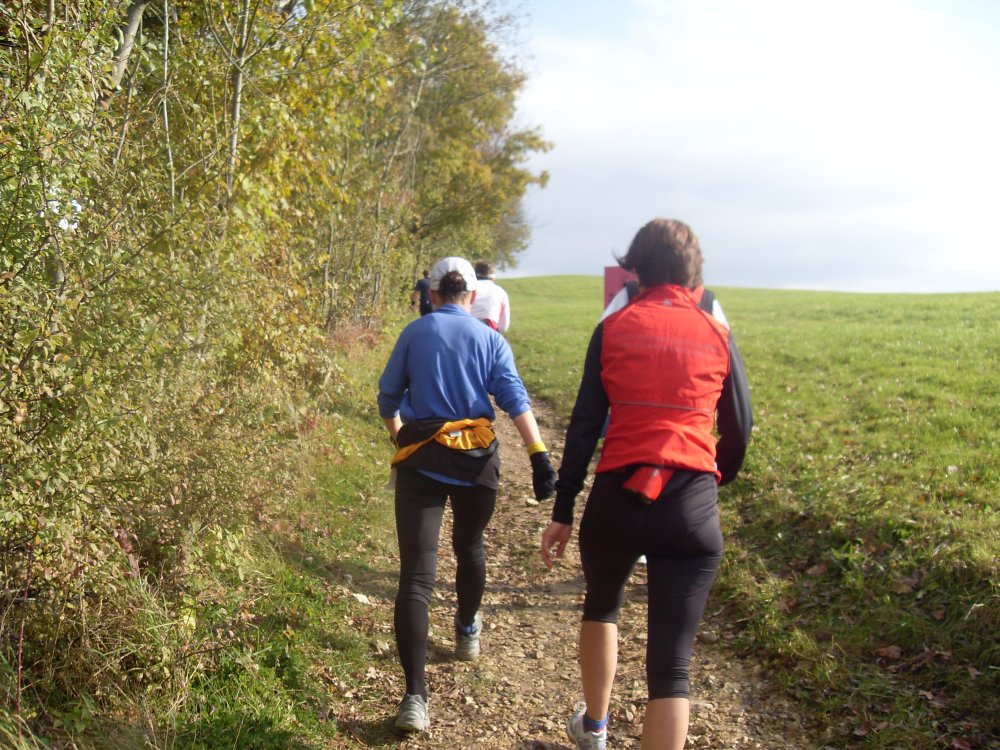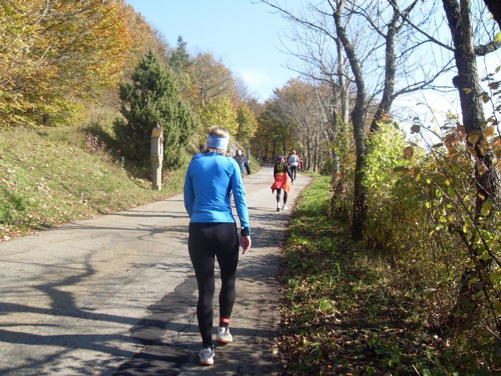 | ...quäle mich den Berg hoch, letztes Jahr war das doch nicht so steil-oder? Endlich oben angekommen Halbzeit! Essen und Trinken, und gleich weiter, runter nach Rechberg, gefährlich da der Teerweg feucht, laubig und somit rutschig ist, wir überholen die Finisher der Rechtberglaufes-sie haben es geschafft....von da kommen wir her...KM ca 28....meine Muskeln melden sich gleichzeitig: re. Wade zuckt, li. Oberschenkel möchte eine Pause... |