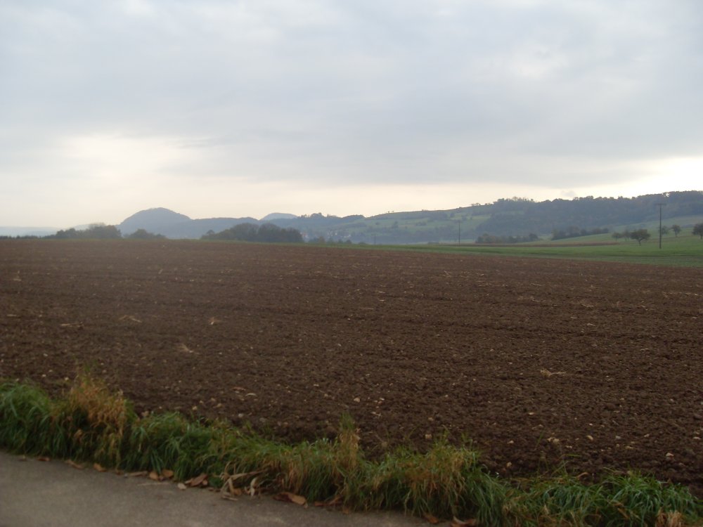 | ...ja der Stauffen...da müssen wir hin laufen.....von hier sieht der Rechberg und der Stuiffen gar nicht so groß aus...leicht wellig?....vorerst gehts nach Wäschebeuren...zum armen Tee trinken...wo ist der Schuß Rum?... |