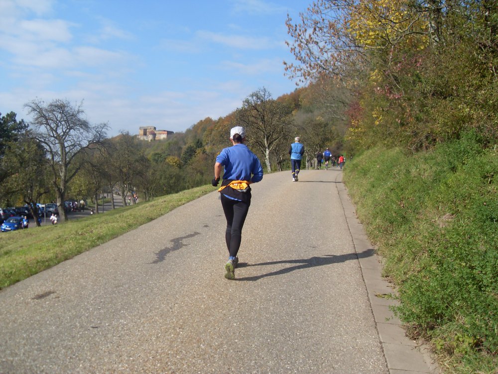| ..der letzte große Anstieg, steig auf, Pause, weiter, keine Fotos mehr, jede Kleine Energiereserve fürs laufen erhalten...Notlauf-Modus...nur noch auf KM 35 konzentrieren. Die - auch das noch-Wendeschleife, da kommen Dir andere entgegen, und alle sehen frischer aus. Stand erreicht Gel rein- Wasser, Tee hinterher und weiter. Wieder die Straße-ächts, leichte Besserung. Runter nach Waldstetten ich kann wieder joggen,einer Läuferin noch den Schuh gebunden, sie hatte einen Krampf. KM 40 Rest vom Fäschd - vom Gel und wieder trinken, jetzt läuft es, ich komme wieder ins laufen,nach Straßdorf bei KM 44 "Mitläuferin" erreicht, zusammen laufen wir dem Ziel entgegen....noch 2KM........geschafft!......... |