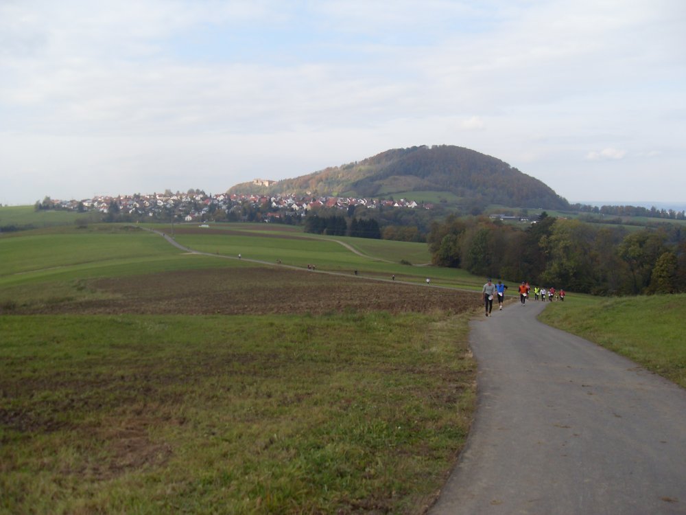 | ..der Blick zurück, so ein Blick nach hinten zeigt Schwäche, den Hohen Stauffen überlaufen, nun an der Straße entlang auf festen ( wie auch sonst) Teer! Mag ich nicht!...auf Trails geht es der Ortschaft Rechberg entgegen... |