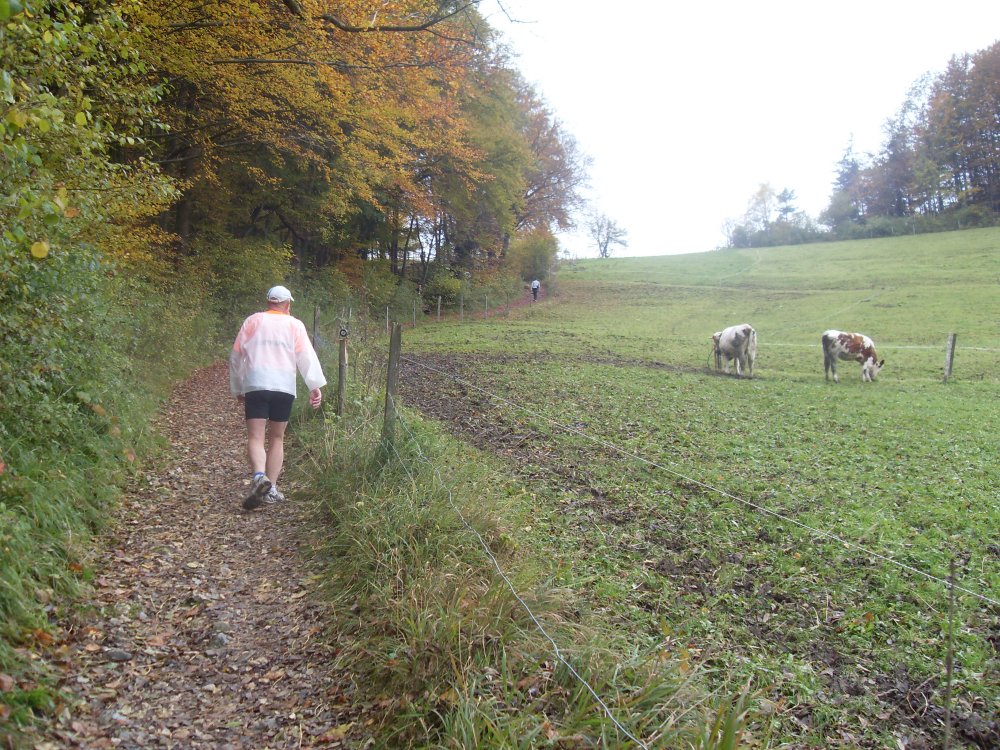 | ...es geht nun bergauf Wäschebeuren entgegen, Speed-Walker überholt, super strahlt die Sonne durch die Bäume, Laufen im Herbst, die schönste Jahreszeit zum laufen, Bäumla zeigen sich in bunten Färbla, mir wird es Wärmer von außen und von innen... und wer ist da...?? |