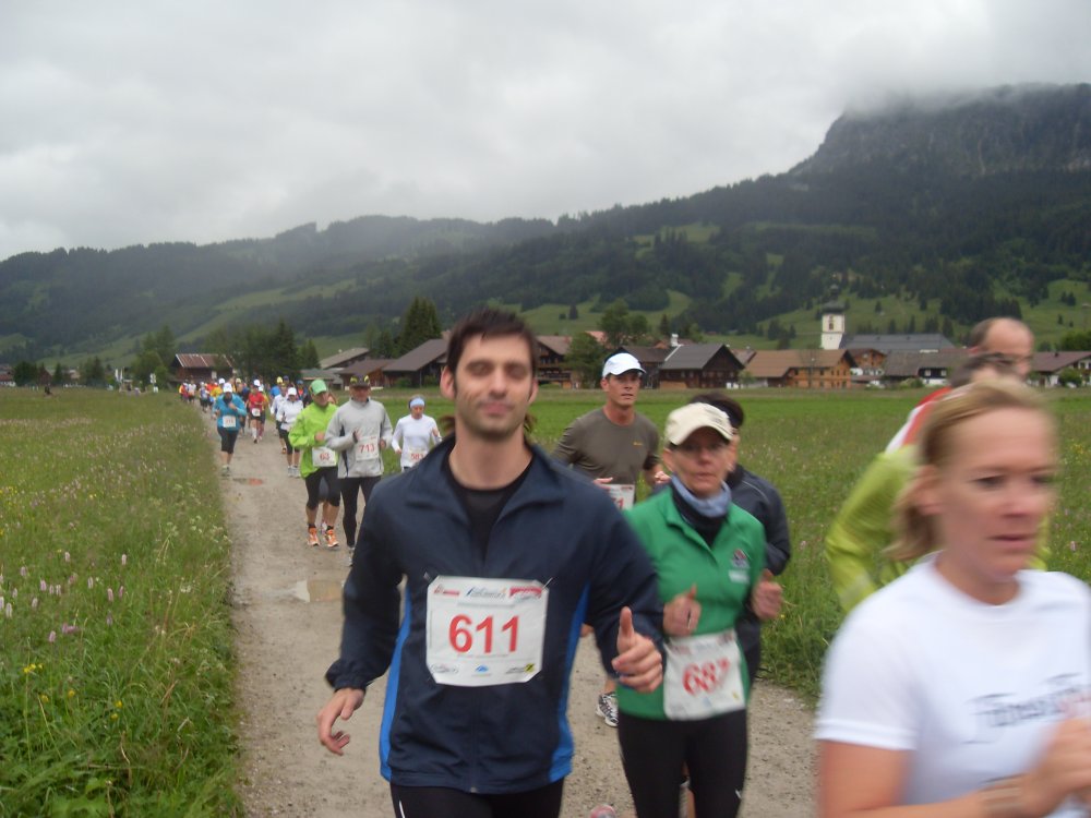 | ...und nun, ...let´s run....vorne machts pip..pip....pip..genaugenommen Dauerpip-pip als wir die Matte überqueren....durch Tannheim durch, und draußen entzehrt sich die "Läuferherde"... |