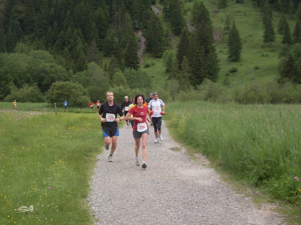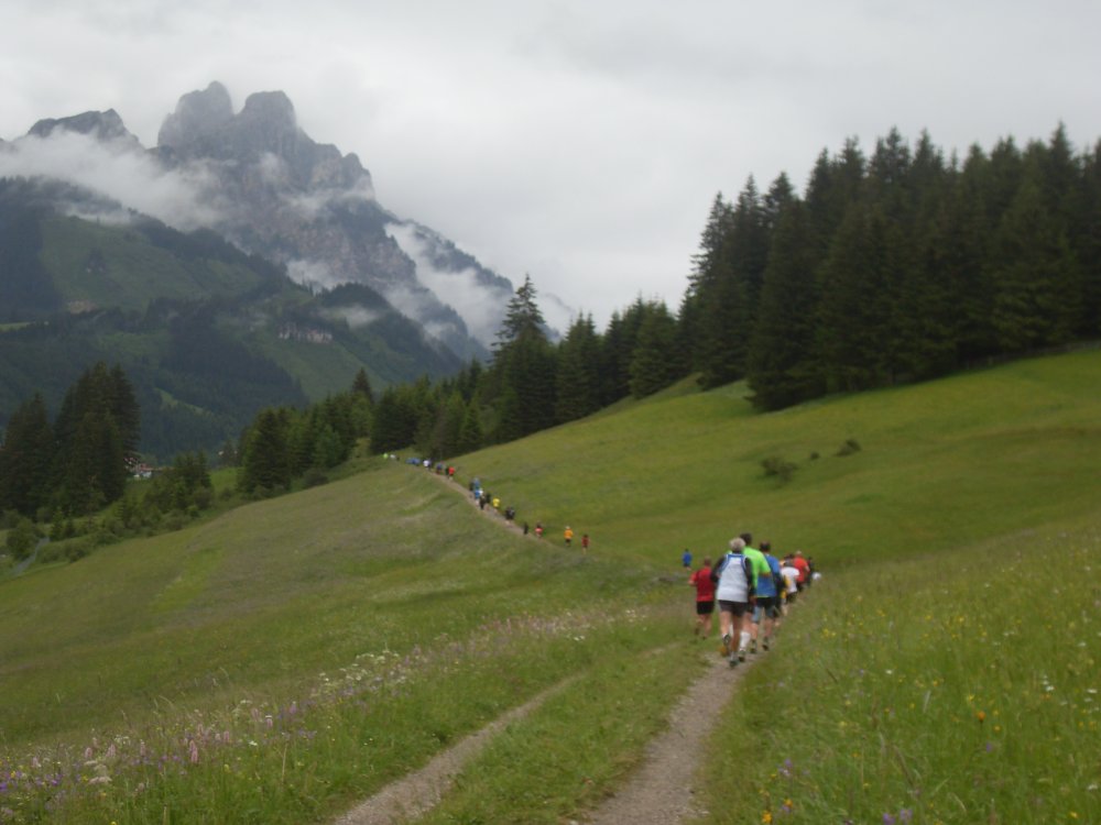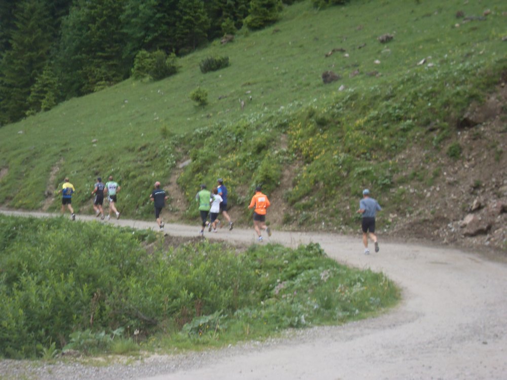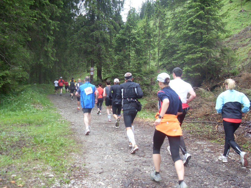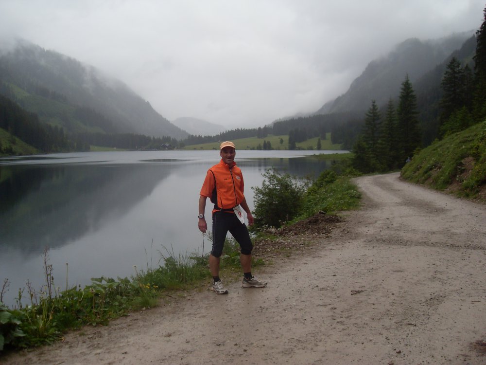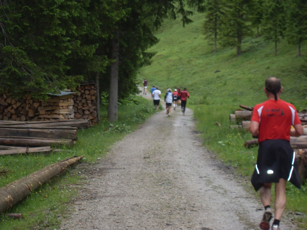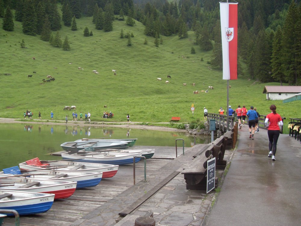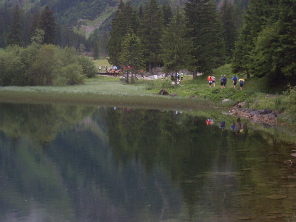 | ...laufen von der Teerstraße runter (endlich! - denn der Autor mag den Teer nicht so) und rein in einen Trail klasse! ziehe das Tempo etwas an....oben am Vilsalpsee kommen mir die "Ersten" entgegen, sind die schon um den See gelaufen????..... |