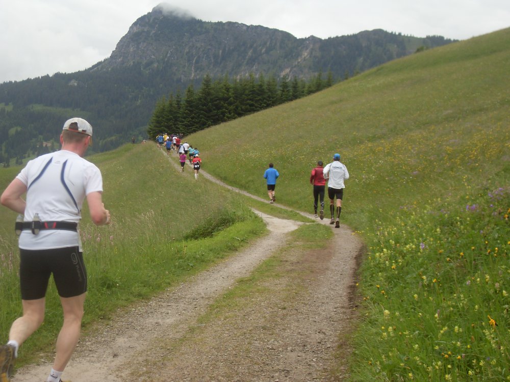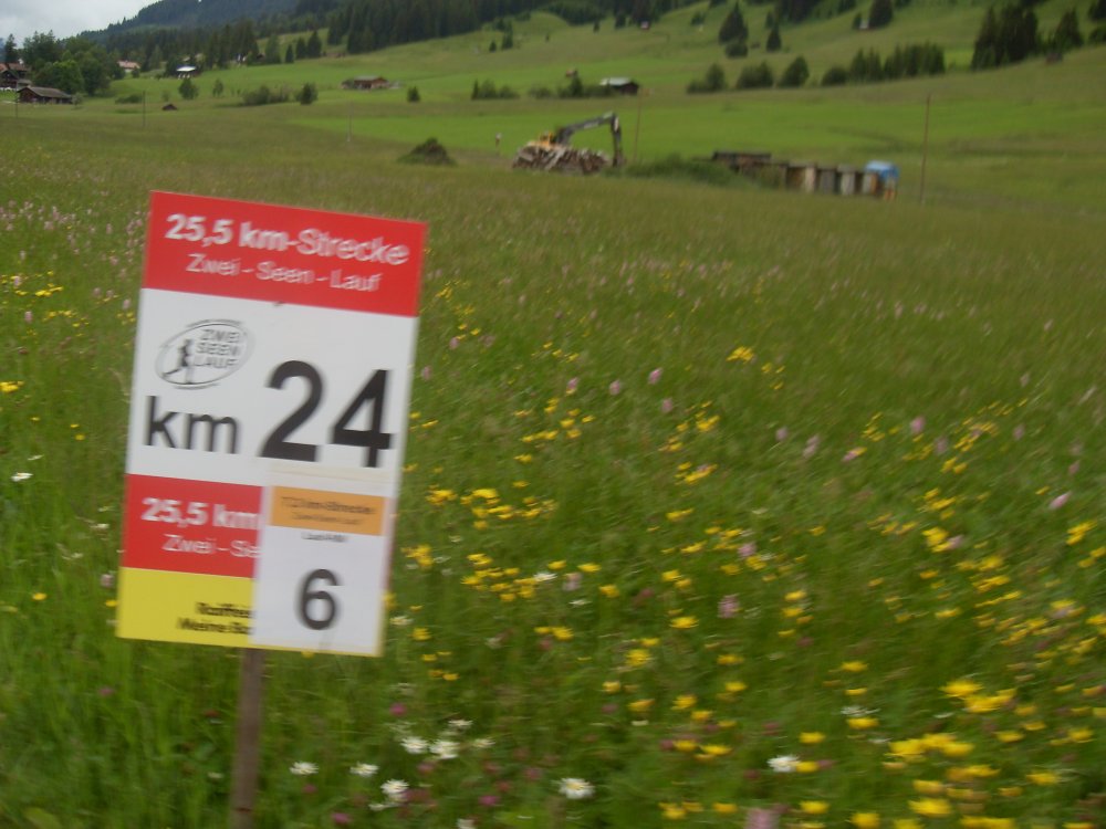 | ...laufen an den Wiesen entlang, der Aggenstein in Sichtweite, runter rollts richtig schnell ( nur mein Empfinden) mache Plätze gut...aber das Ziel ist noch weit....am Haldensee entlang....werde gejagt...kaum noch Zeit für Fotos zu machen??? Blick nach Haller, über einen Wiesenweg -Fliege ins Auge bekommen- "au dees no" (dt. auch dieses noch) zum nächsten Versorgungsstand mit Ankündigung..wieviel Sekunden hinter dem Führenden????.... |