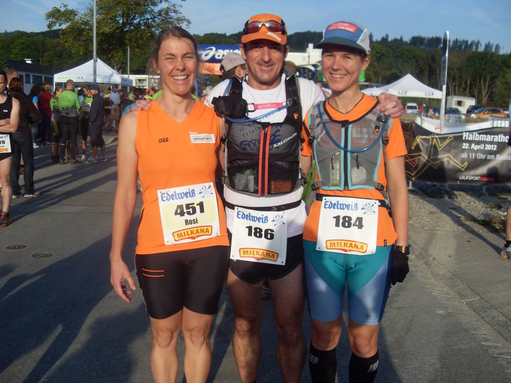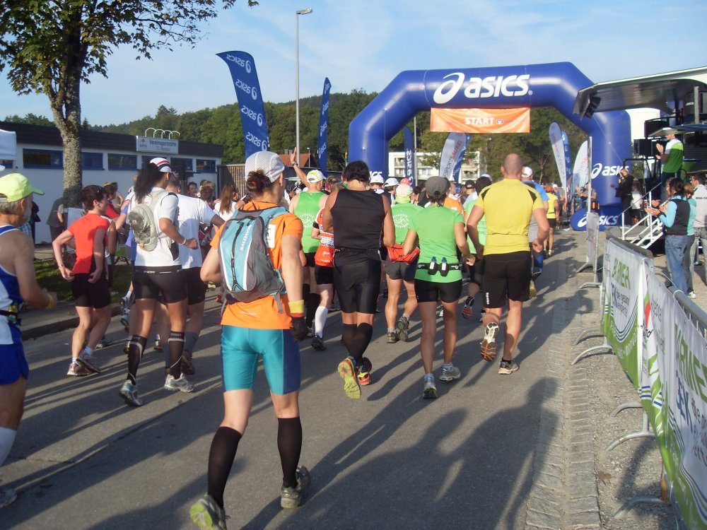 | ...Voralpenmarathon, beim herrlichstem Laufwetter stehen wir "Team ratiopharm" in Kempten am Start. Die Nachmeldung klappte problemlos. Startnummer ran, Rucksack gepackt und gefüllt. Die "R.-Säcke" laufen die 50km, sonst 30km, aber am Zielbereich Schild 52 gesehen?? uff!... und los.... |