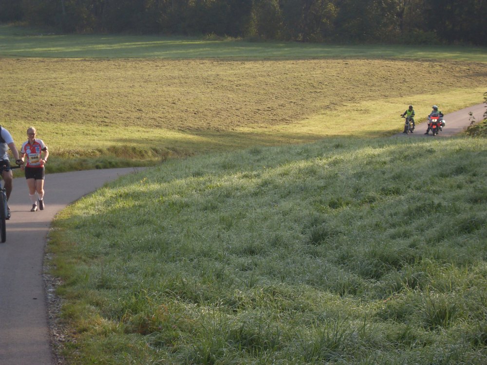Fazit: für mich als Trail-Schlurffer bombastische Strecke!! supi-Trails -wenig Teer! sehr gute Ausschilderung ( faschd bis zum Schluß), daß "Bächerla" ausgehen liegt an uns "Nachmelder" selber, daher nicht meckern! Motto des Tages: "soooo a scheeeeener Dahg"
