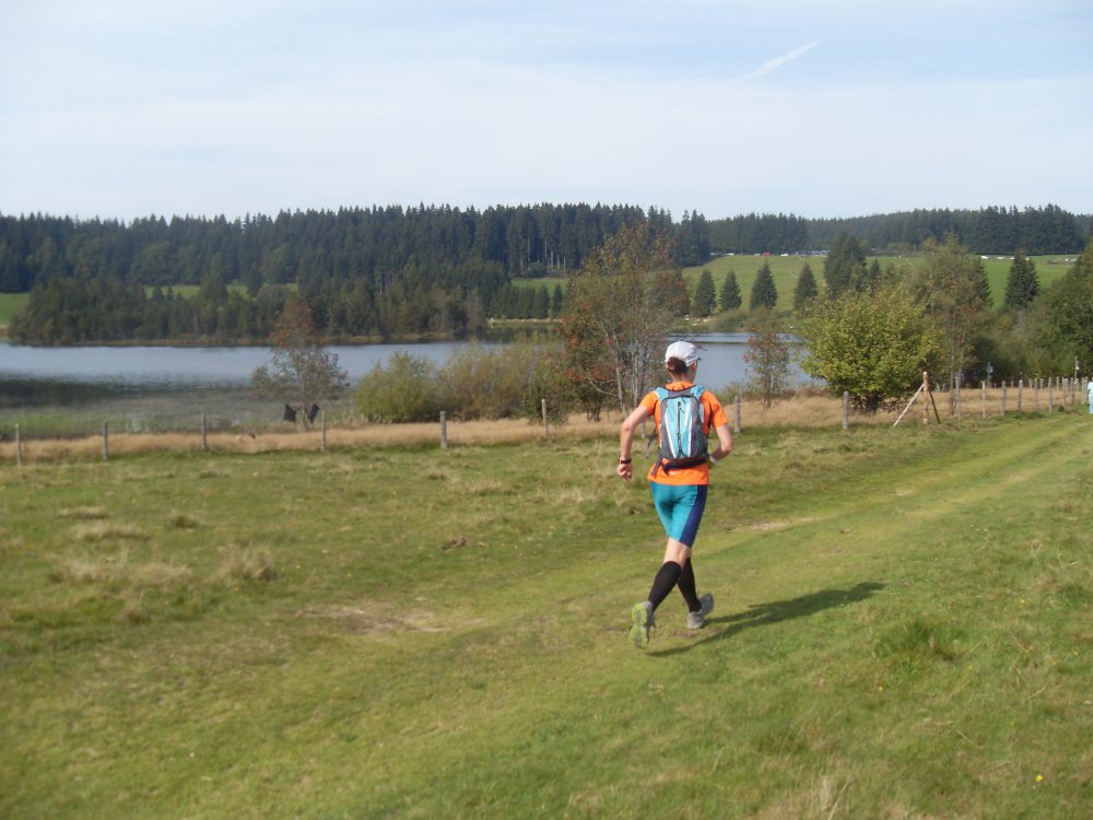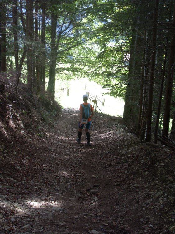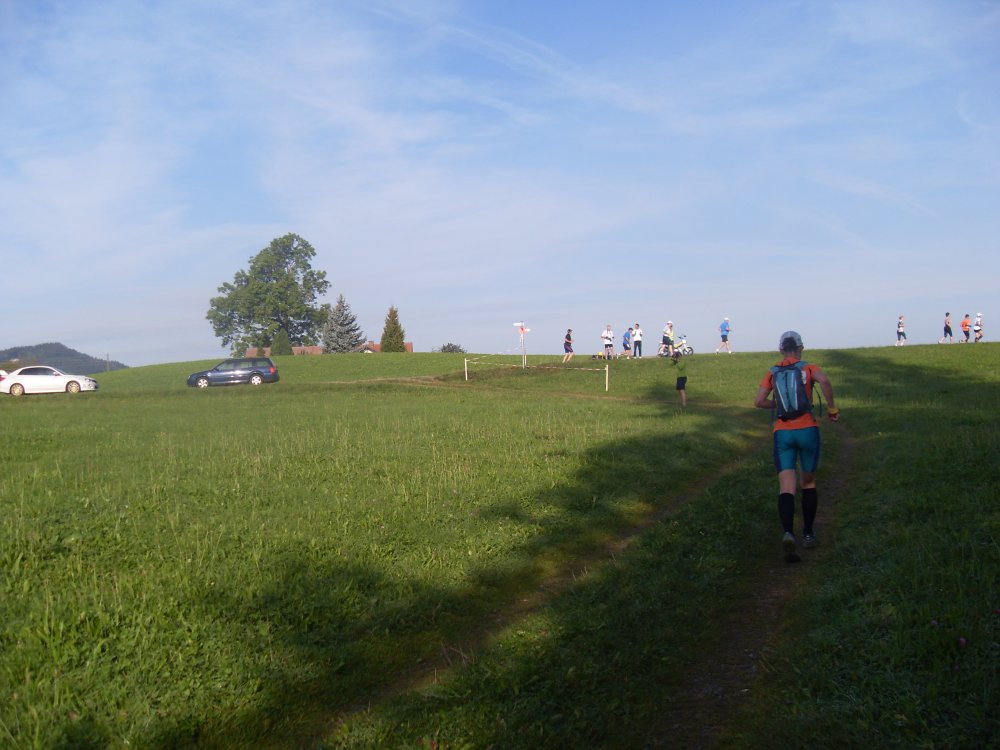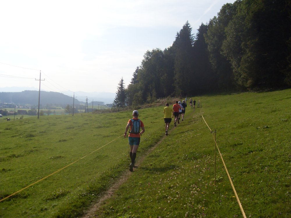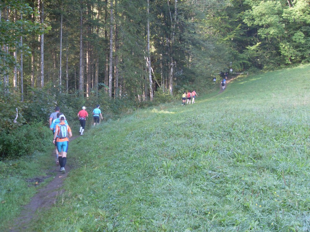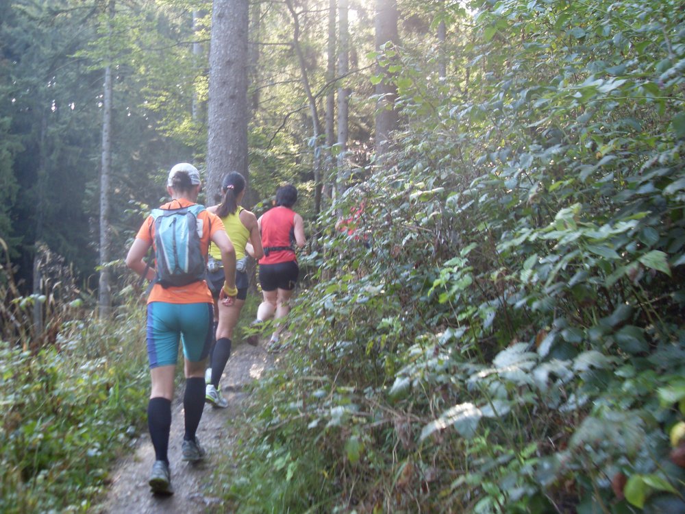 | ...das Feld zieht sich auseinander, danach kommen Trails (kleine Pfädla) und in den Wald hinein, super, da macht das laufen richtig Spaß.... |