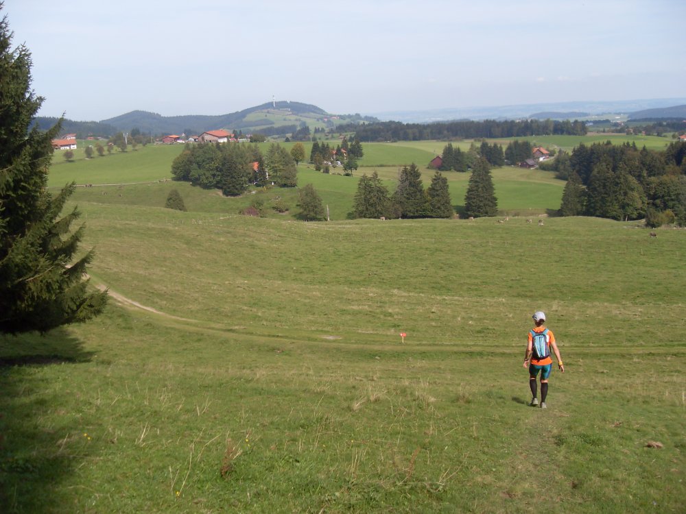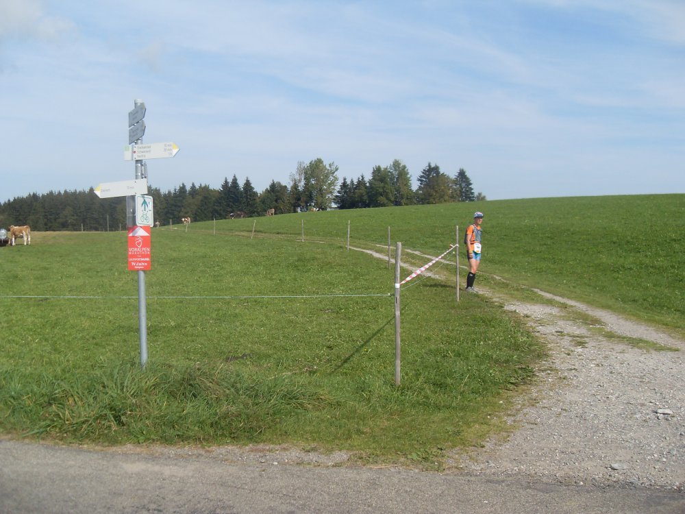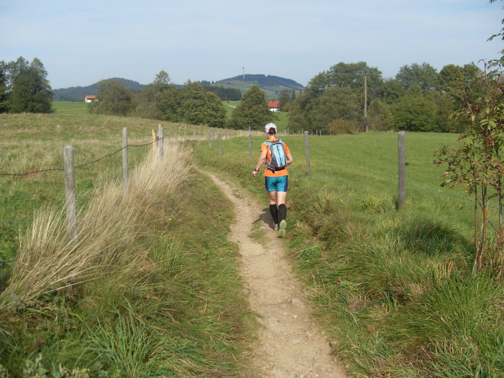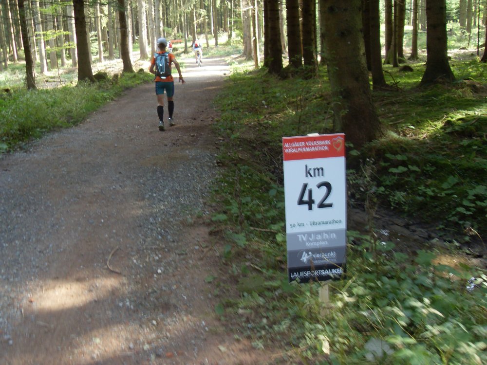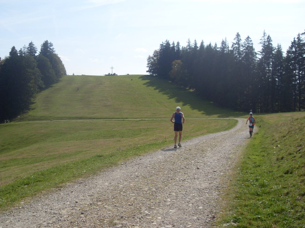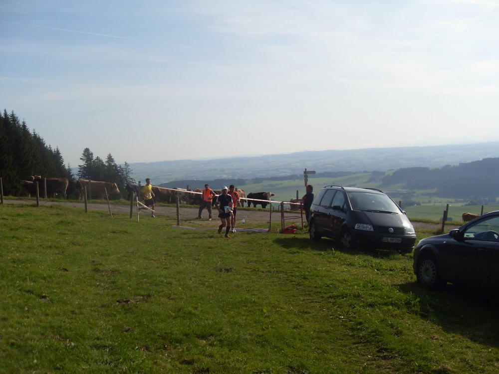 | .....höchster und auch letzter Punkt erreicht....Blick hinunter nach Kempten....dann, nach der VS falsch gelaufen, am Trail Abzweig nach links gelaufen, da das Schild nicht eindeutig in eine Richtung zeigte und auch keine "Bestätigungsbändala" mehr zu sehen war. Dafür am Baum ein riesengroßer roter Pfeil nach links, somit gefolgt, Läufer eingeholt, also richtig? oder der war auch auf dem falschen Weg? die Stimme des Sprechers wird leiser?....ohje-falscher Weg...., somit mehr Meter gar Km gelaufen....Ziel trotzdem und glücklich erreicht! |