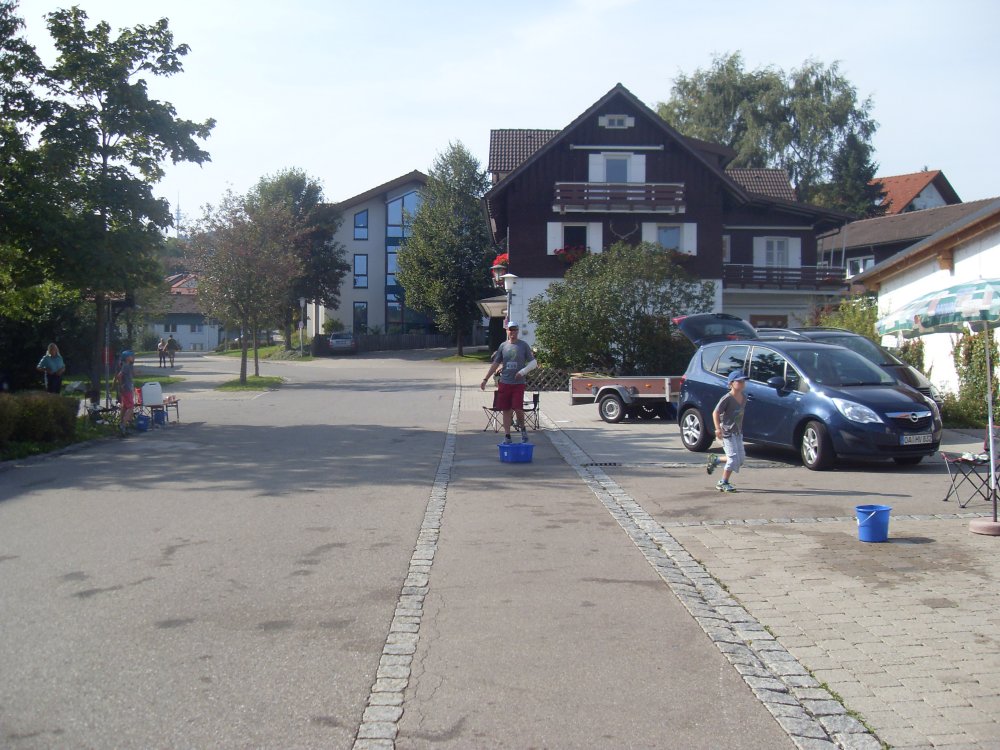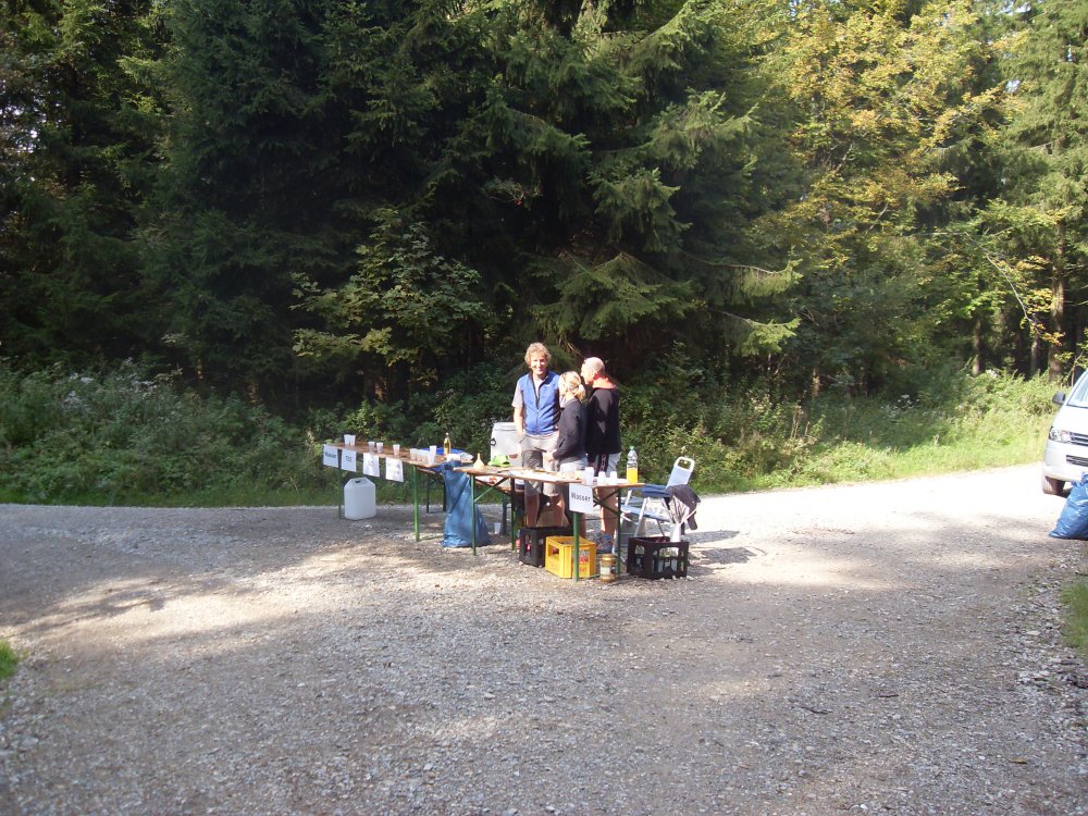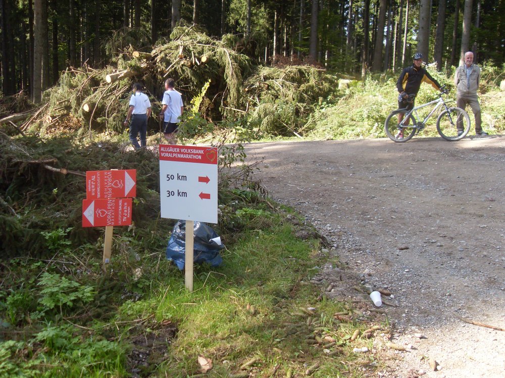 | ...... Ermengerst erreicht Km46, da wir nach hinten freie Luft haben, können wir uns am Tisch reichlich und ohne Zeitdruck bedienen, Kopf noch kühlen und weiter durchs Dorf und hinein, eher hinauf in die Wildniss..... |
