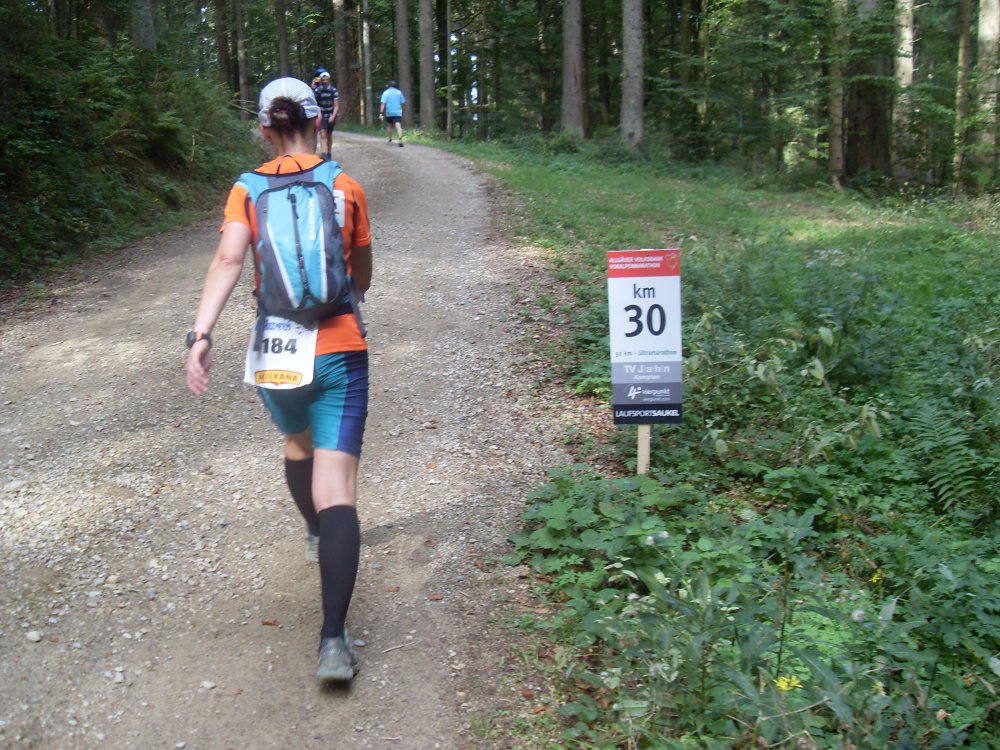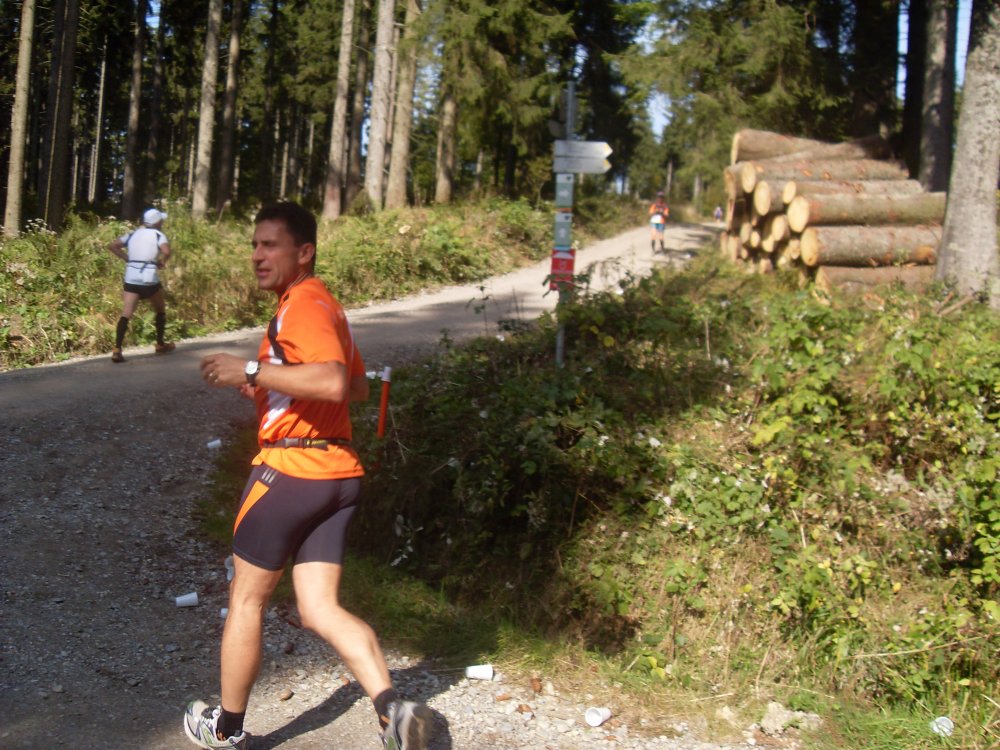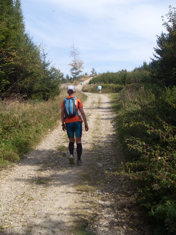 | .....I-A, I-Ahhhh, was er wohl denkt?.....irgendwann erreichen wir Km 15 und da ist auch die Trennung der Läufe, die 30km laufen runter, und die 50er kraxeln weiter nach oben... |