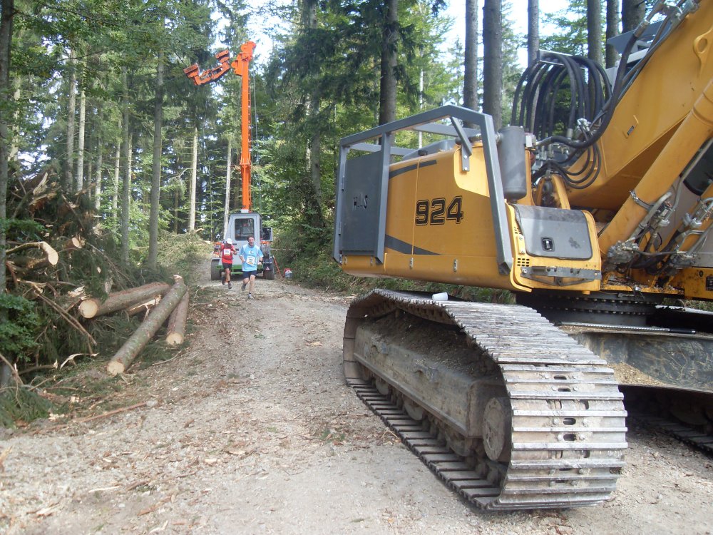 | ....wir sind Waldläufer, auf und ab wechsel sich ständig, die Höhenmeter müssen ja irgendwie zusammenkommen, Anfeuerung von der VS und die kleinen sind da voll dabei! Klasse!, lauf um das schwere Gerät.... |