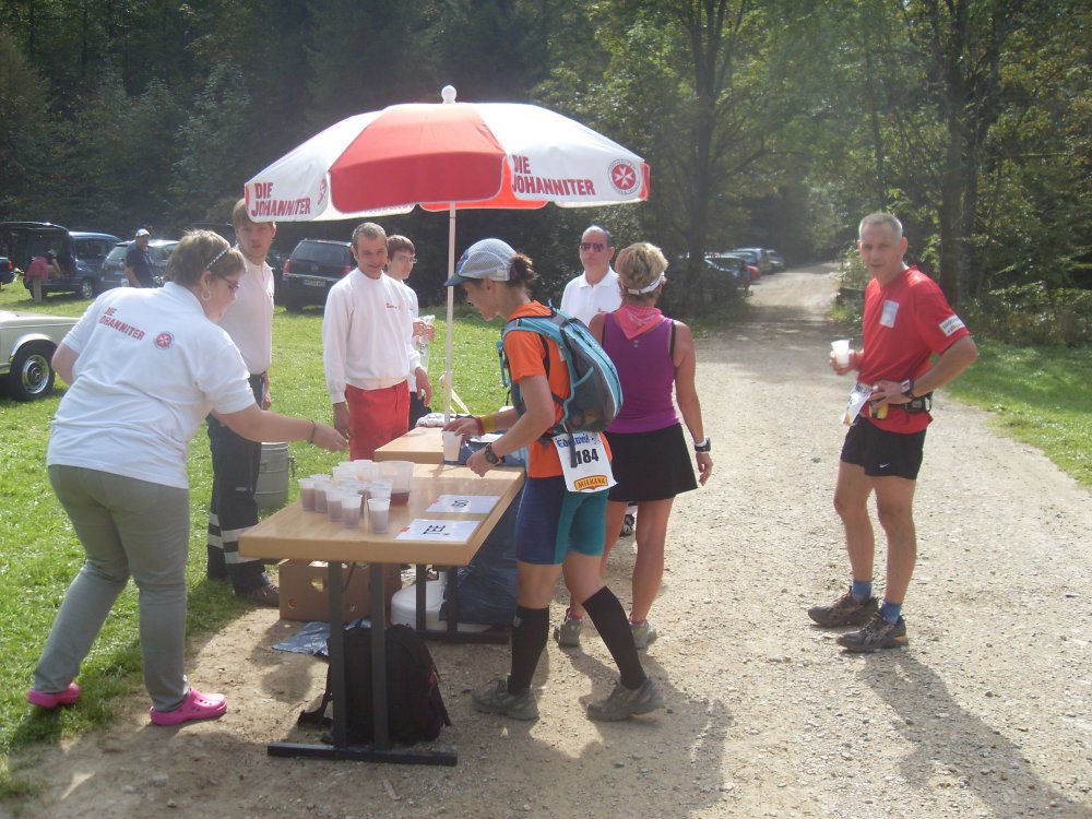 | ....KM 10 erreicht, danach kommen "Sahnetrails" "oifach scheeeee!" runter vom Berg, an der Verpflegungsstation "Tee four 2" quasi 2 Becher Tee und weiter.... |