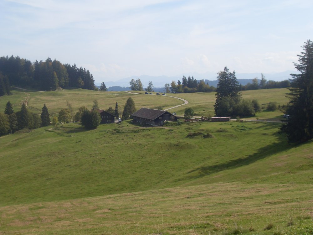 | ...hier würd ich gerne auch wohnen, aber danach biegt ein Sträßle ins Tal, mindestens 100% Gefälle, meine Zehen stoßen im Schuh vorne an - Alle! Wie kommt man da im Winter rauf??? Am VS erst mal wieder die verdiente Pause, und weiter....KM32 erreicht, für mich Boxenstopp!?.... |