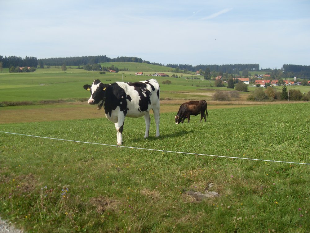 | ....Eschacher Weiher erreicht, Wasserflasche verloren, auch das noch, ein paar Meter wieder zurück und wieder vor,..Muhhhhhh.... |